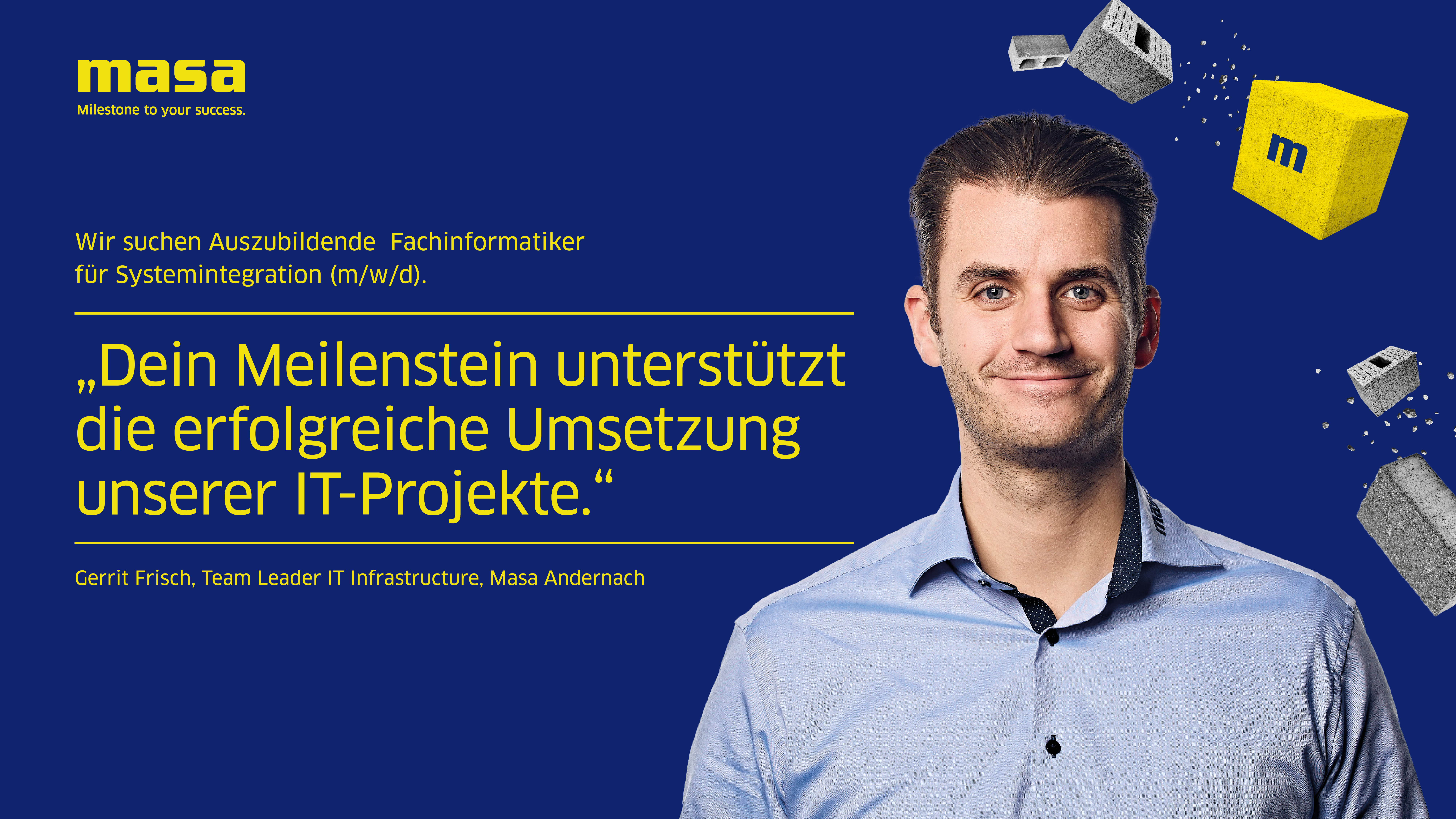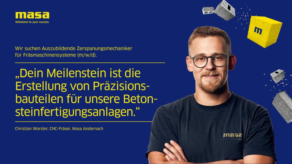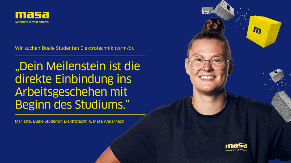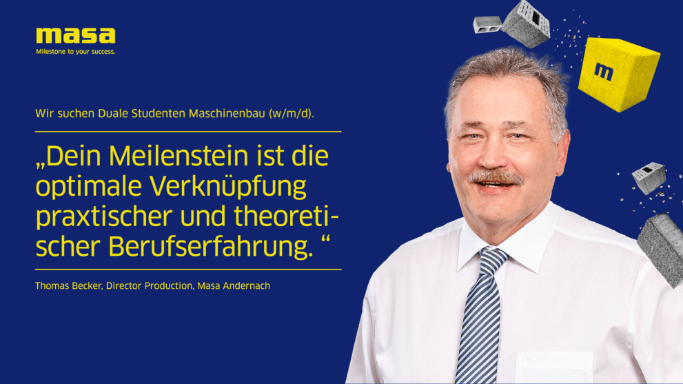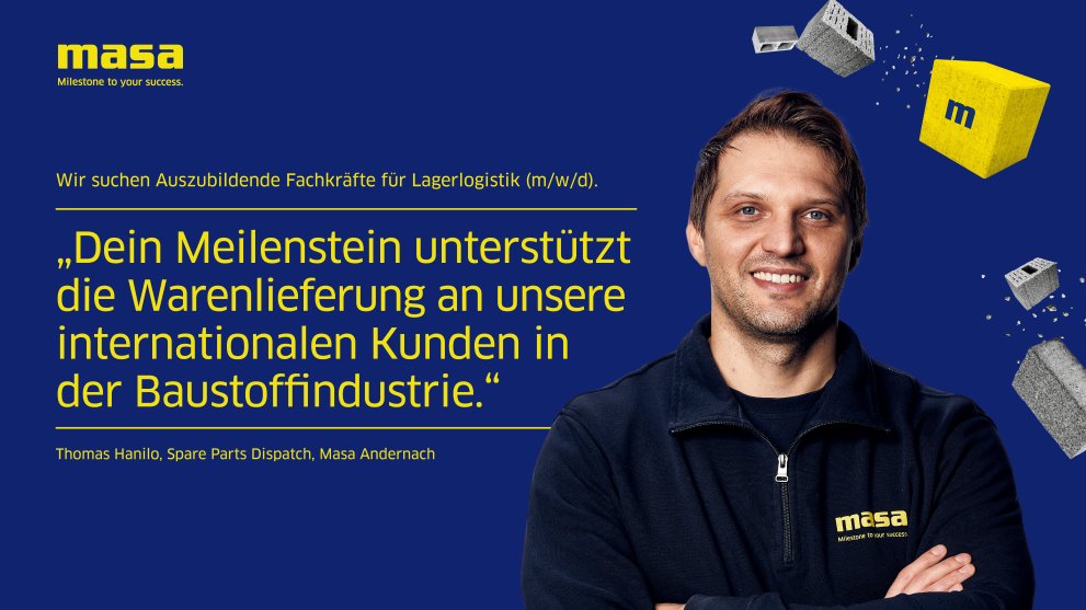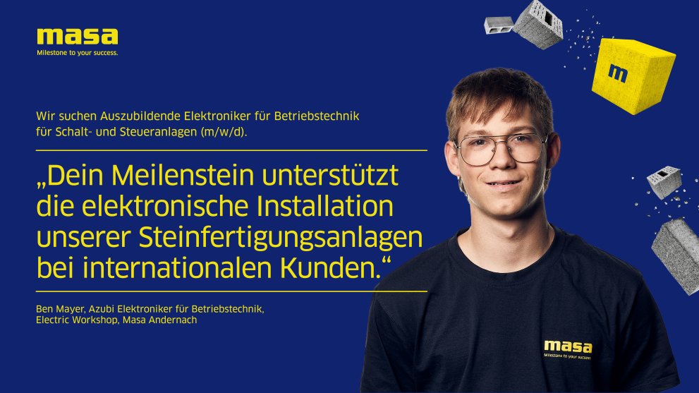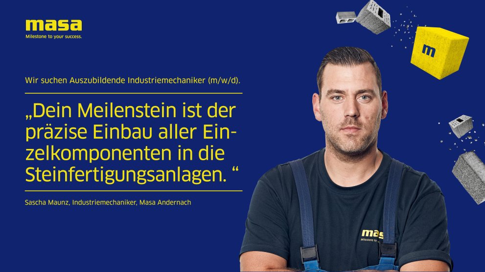 Die Masa bildet am Standort Andernach in den Fachrichtungen Industriekauffrau/-mann, Fachinformatiker*innen, Technische Produktdesigner*innen, Fachkraft für Lagerlogistik, Zerspanungsmechaniker*innen, Industriemechaniker*innen und Elektroniker*innen aus.